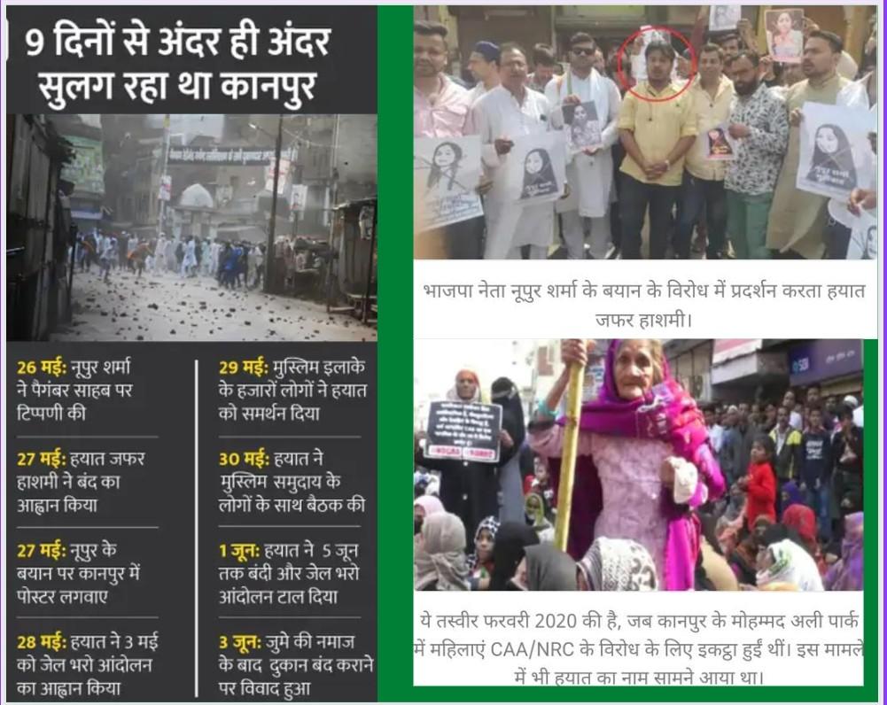 27 मई को मौलाना मोहम्मद अली जौहर फैंस एसोसिएशन के अध्यक्ष हयात जफर हाशमी ने बाजार बंद का आह्वान किया। नूपुर के बयान पर कानपुर में पोस्टर लगाए गए। 28 मई को हयात की तरफ से 3 मई को जेल भरो आंदोलन का आह्वान किया गया।
