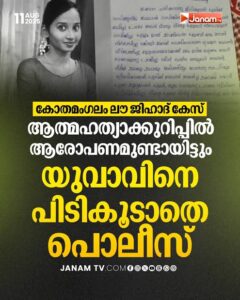 ‘केरल के एर्नाकुलम जिले में एक आश्चर्यजनक मामला सामने आया है। 23 साल की एक छात्रा ने आत्महत्या कर ली। वह टीचर ट्रेनिंग कोर्स कर रही थी। आरोप है कि उसका प्रेमी और प्रेमी के घरवाले उस पर शादी को धर्म बदलने का दबाव बना रहे थे।