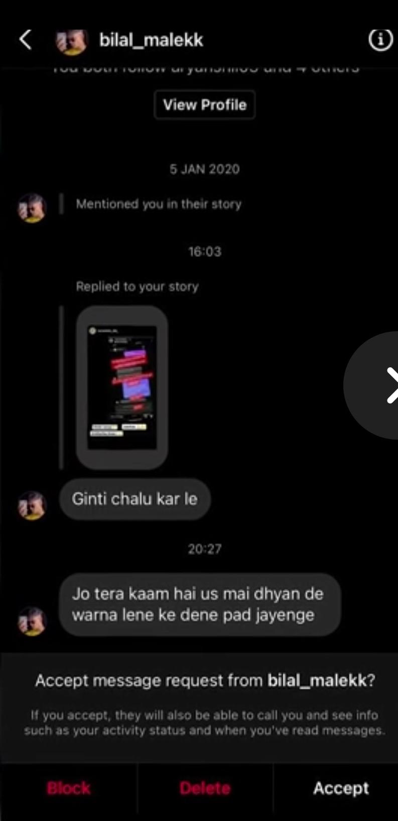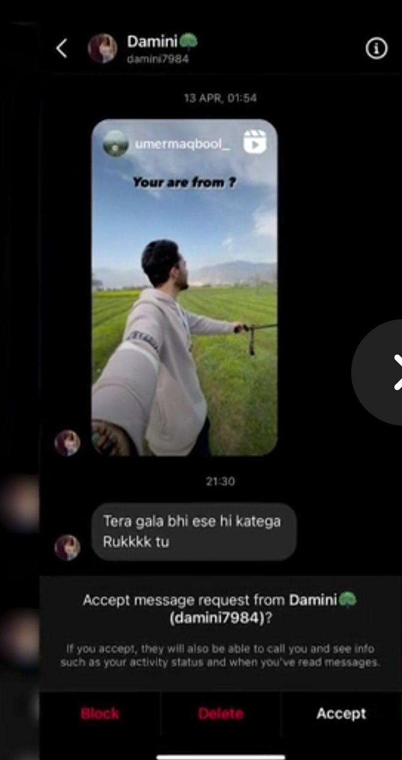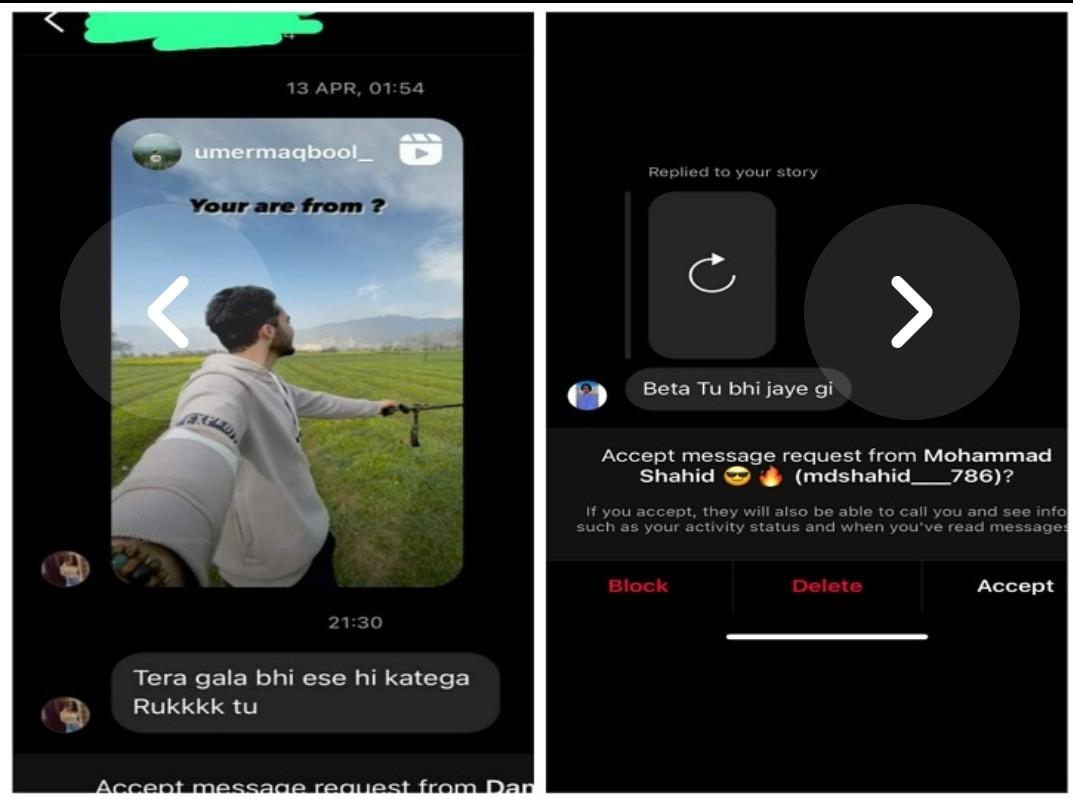 इंस्टाग्राम में मैसेज कर जान से मारने की धमकी दी है।