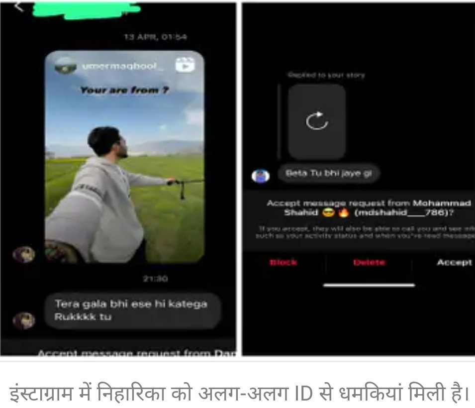 इंस्टाग्राम में निहारिका को अलग-अलग ID से धमकियां मिली है।