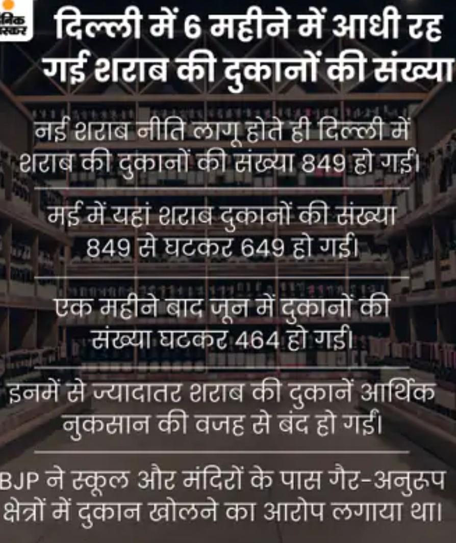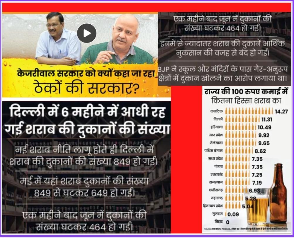 भाजपा ने आरोप लगाया कि शराब लाइसेंसधारियों का कमीशन बढ़ा दिया। शराब कंपनियों के 144 करोड़ माफ कर दिए। ड्राई डे कम कर दिए। पंजाब चुनाव से पहले शराब माफियाओं और केजरीवाल की डील हुई थी कि फायदा पहुंचाओगे तो पंजाब चुनाव में मदद करेंगे। पहले रेवन्यू 6 हजार करोड़ रुपया था, वो 5 हजार करोड़ से कम हो गया। दुकानें ढाई सौ से बढ़ाकर 800 से ज्यादा हो गईं।