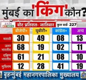 एग्जिट पोल में बीएमसी चुनाव के जातिवार वोटिंग ट्रेंड की बात करें तो मराठी वोटरों में यूबीटी+ को 49 प्रतिशत समर्थन मिला, जबकि भाजपा+ को 30 प्रतिशत वोट मिले. उत्तर भारतीय मतदाताओं में भाजपा गठबंधन को भारी बढ़त मिली है, जहां 68 प्रतिशत ने भाजपा+ को वोट किया. दक्षिण भारतीयों में भी भाजपा+ 61 प्रतिशत समर्थन के साथ आगे रही. मुस्लिम वोटरों में कांग्रेस+ को 41 प्रतिशत और यूबीटी+ को 28 प्रतिशत समर्थन मिला, जबकि भाजपा+ को इस वर्ग में सिर्फ 12 प्रतिशत वोट मिले.