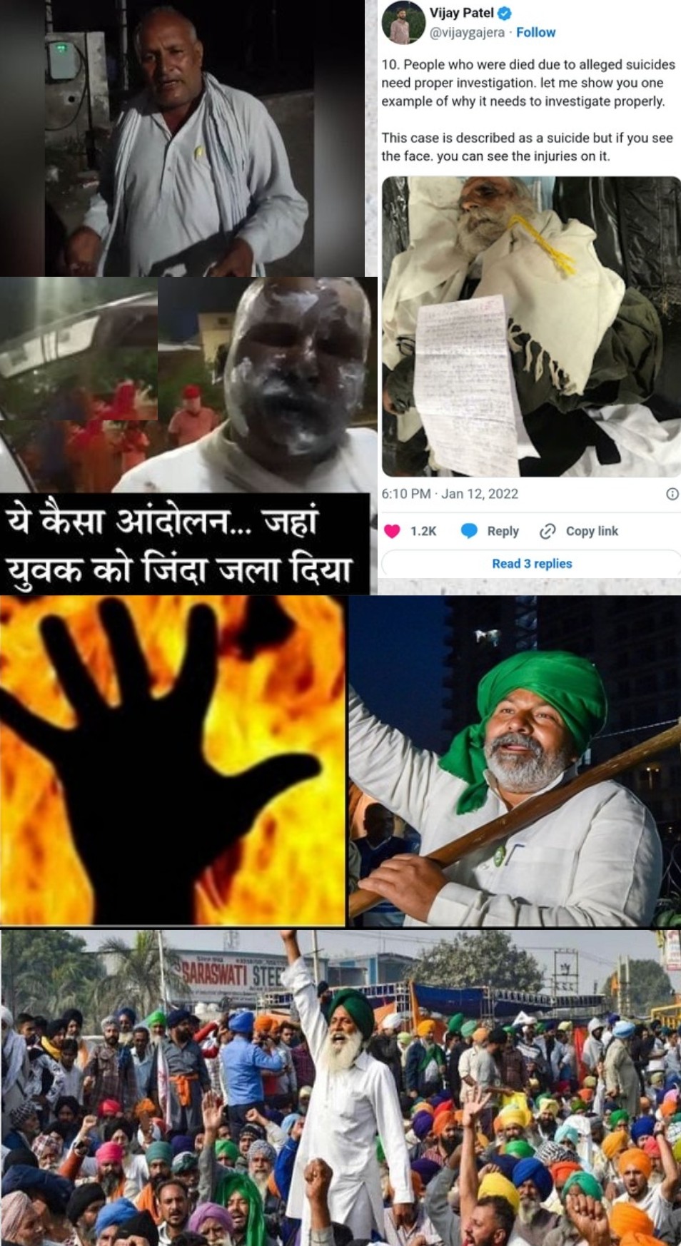 घटना हरियाणा के बहादुरगढ़ के पास कसार गाँव की है। गुरुवार (जून 17, 2021) तड़के तीन बजे सीमा पर प्रदर्शन कर रहे ‘किसानों’ ने मुकेश पर पेट्रोल छिड़क कर आग लगा दी। उसे तुरंत अस्पताल ले जाया गया जहाँ उसने दम तोड़ दिया।