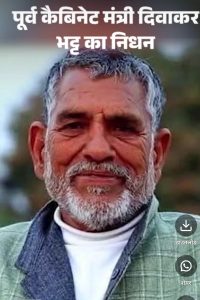देहरादून/हरिद्वार 25 नवंबर 2025। उत्तराखंड के पूर्व कैबिनेट मंत्री और राज्य आंदोलन में फील्ड मार्शल नाम से लोकप्रिय दिवाकर भट्ट का निधन हो गया है। आज शाम 4 बजकर 20 मिनट पर उन्होंने अपने हरिद्वार स्थित आवास पर अंतिम सांस ली। पिछले 10 दिनों से वह देहरादून के महंत इंदिरेश चरणदास अस्पताल में भर्ती थे।