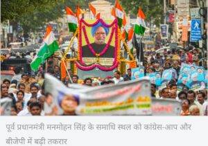 पूर्व प्रधानमंत्री मनमोहन सिंह के समाधि स्थल को कांग्रेस-आप और भाजपा में भिड़ंत