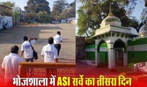 धार जिले की भोजशाला के सर्वे का आज तीसरा दिन है। सुबह सात बजकर 50 मिनट पर आर्कियोलॉजिकल सर्वे ऑफ इंडिया (एएसआई) की टीम भोजशाला परिसर पहुंची। हिंदू पक्ष से गोपाल शर्मा व आशीष गोयल और मुस्लिम पक्ष से अब्दुल समद खान सर्वे टीम के साथ मौजूद हैं। बता दें कि मध्य प्रदेश हाईकोर्ट की इंदौर बेंच के आदेश पर भोजशाला का सर्वे एएसआई द्वारा किया जा रहा है। सर्वे बीते शुक्रवार को शुरू हुआ था, आज इसका तीसरा दिन है। दिल्ली और भोपाल के अफसरों की टीम भोजशाला में सर्वे कर रही है।