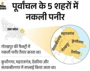 तैयार पनीर कुशीनगर, महराजगंज, संतकबीरनगर और देवरिया में सप्लाई हो रहा था। खाद्य सुरक्षा एवं औषधि विभाग ने फैक्ट्री 21 मई को सील कर 250Kg नकली पनीर नष्ट किया।