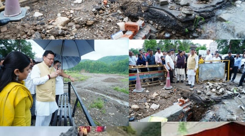 धामी ने किया बारिश से प्रभावित जगहों का निरीक्षण