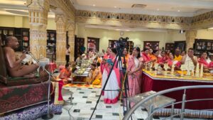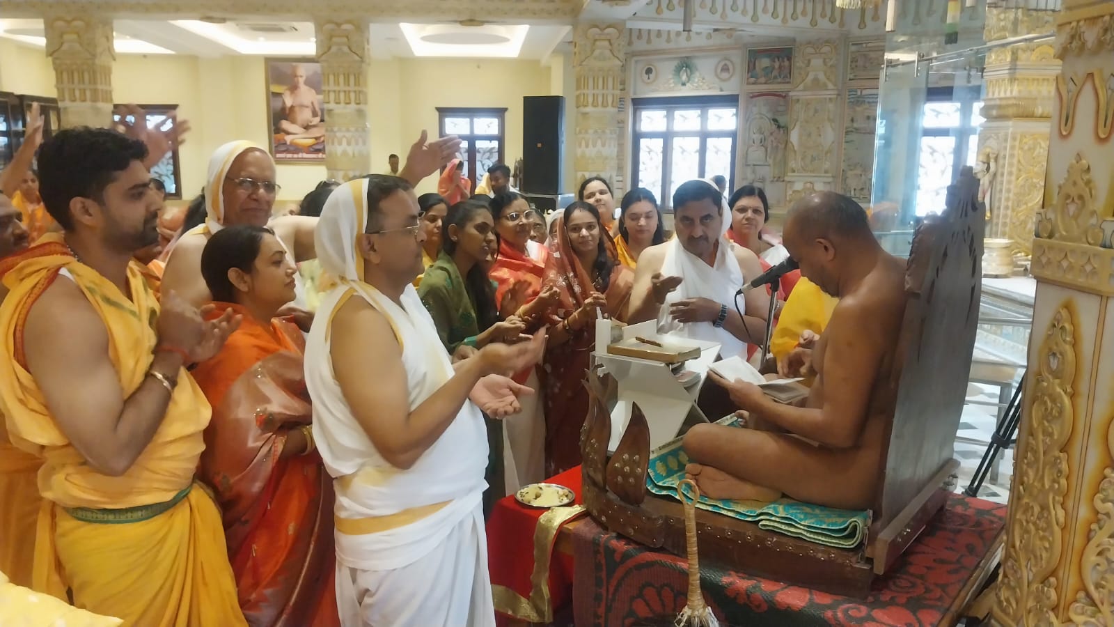 पूज्य आचार्य श्री के पास बाहर से पधारे गुरुभक्तोों का पुष्प वर्षायोग समिति ने स्वागत अभिनन्दन किया।