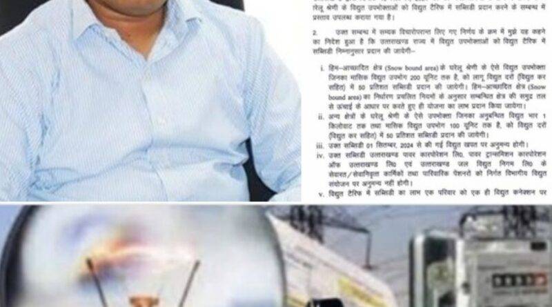 देहरादून 24 सितंबर 2024. मुख्यमंत्री पुष्कर सिंह धामी की 16 सितम्बर, 2024 को की गयी घोषणा के क्रम में राज्य के घरेलू श्रेणी के विद्युत उपभोक्ताओं को विद्युत टैरिफ में सब्सिडी प्रदान करने के सम्बन्ध में शासनादेश जारी कर दिया गया है।
