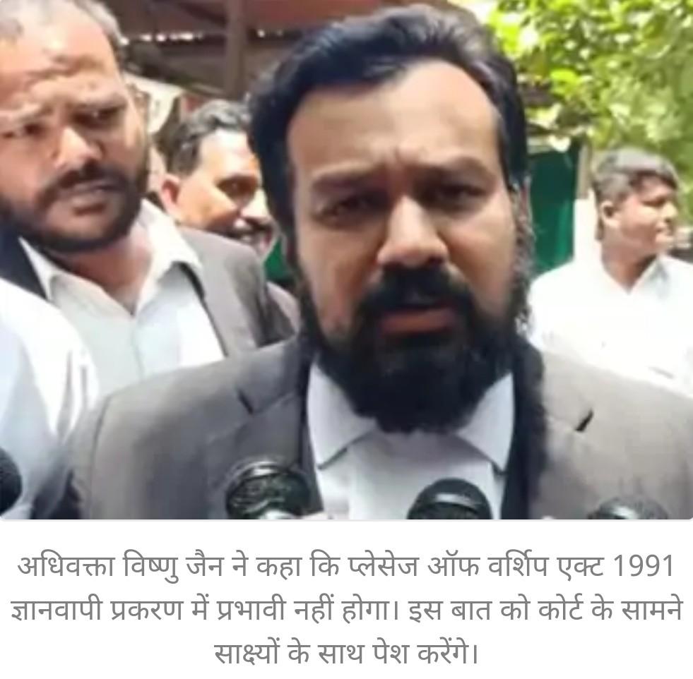 अधिवक्ता विष्णु जैन ने कहा कि प्लेसेज ऑफ वर्शिप एक्ट 1991 ज्ञानवापी प्रकरण में प्रभावी नहीं होगा। इस बात को कोर्ट के सामने साक्ष्यों के साथ पेश करेंगे।
