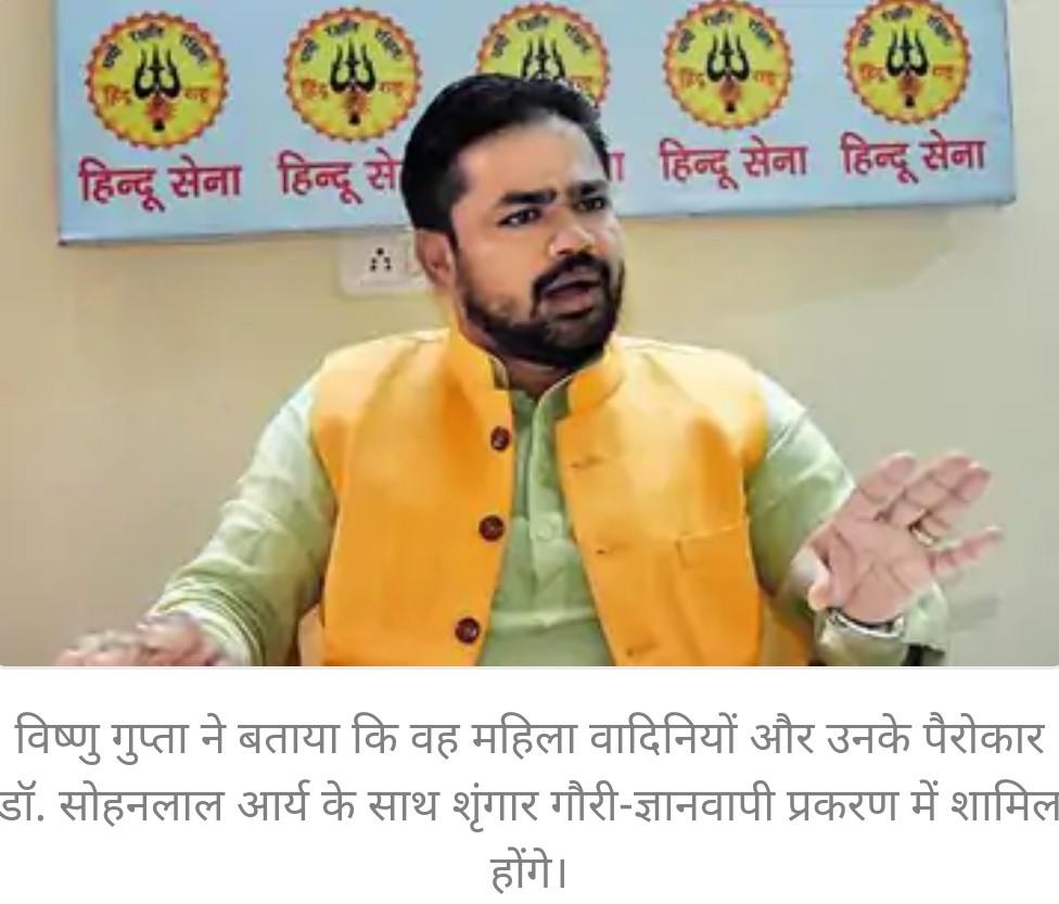विष्णु गुप्ता ने बताया कि वह महिला वादिनियों और उनके पैरोकार डॉक्टर सोहनलाल आर्य के साथ शृंगार गौरी-ज्ञानवापी प्रकरण में शामिल होंगें।