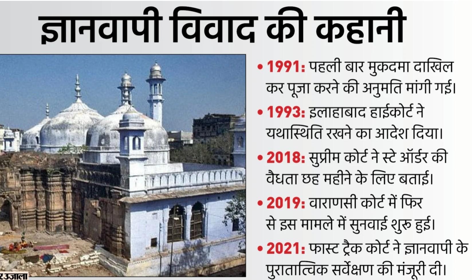 हाल के वर्षों की बात की जाए तो 38 साल पहले 1984 में दिल्ली की धर्म संसद में हिंदू पक्ष को अयोध्या, काशी और मथुरा पर दावा करने के लिए कहा गया। वर्ष 1991 में वाराणसी कोर्ट में याचिका दायर कर ज्ञानवापी मस्जिद पर हिंदू पक्ष ने अपना दावा किया। परिसर में पूजा की अनुमति के साथ मस्जिद को ढहाने की मांग की गई। वर्ष 1998 में अंजुमन इंतेजामिया मस्जिद कमेटी की याचिका पर इलाहाबाद हाई कोर्ट ने निचली अदालत में सुनवाई पर रोक लगा दी।