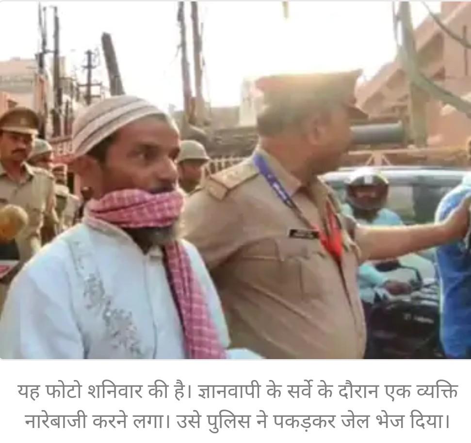 यह फोटो शनिवार की है। ज्ञानवापी के सर्वे के दौरान एक व्यक्ति नारेबाजी करने लगा। उसे पुलिस ने पकड़कर जेल भेज दिया।