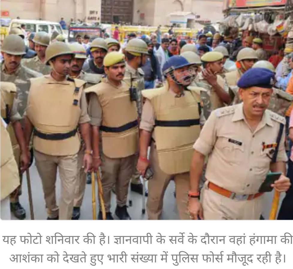 यह फोटो शनिवार की है। ज्ञानवापी के सर्वे के दौरान वहां हंगामा की आशंका को देखते हुए भारी संख्या में पुलिस फोर्स मौजूद रही है।