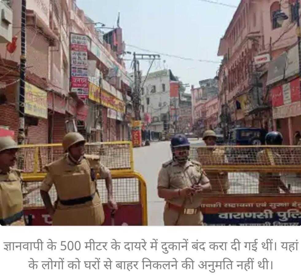 ज्ञानवापी के 500 मीटर परिधि में दुकानें बंद करा दी गई थीं। यहां लोगों को घरों से बाहर निकलने की अनुमति नहीं थी।