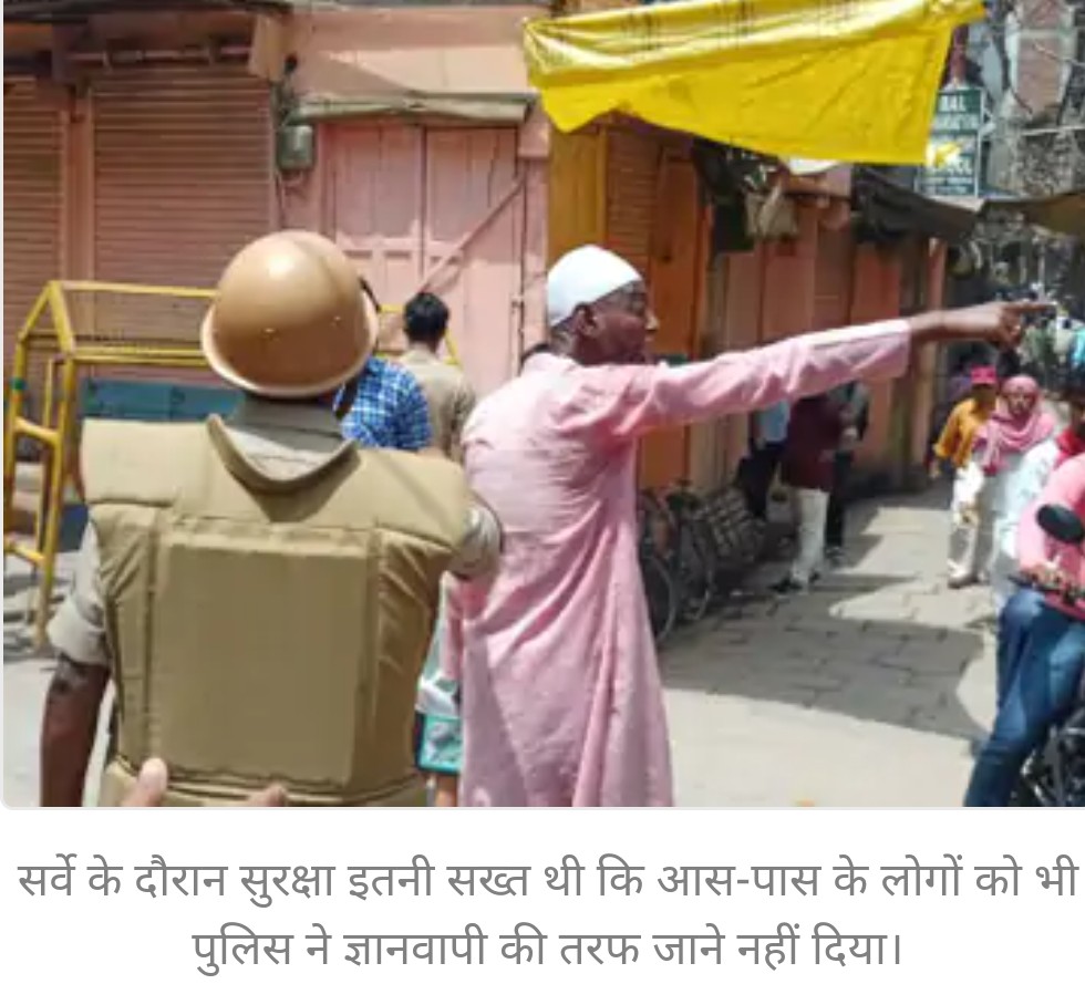 सर्वे के दौरान सुरक्षा इतनी सख्त थी कि आस-पास के लोगों को भी पुलिस ने ज्ञानवापी की तरफ जाने नहीं दिया।