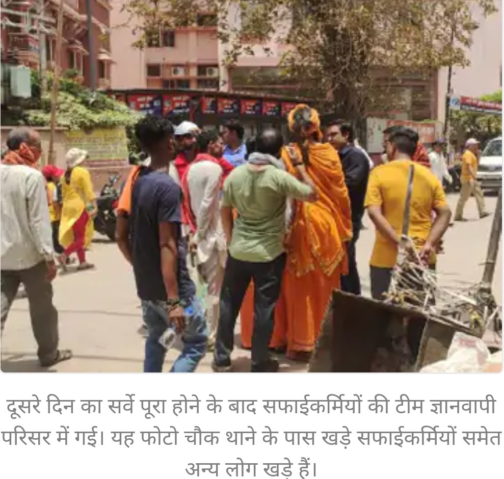 दूसरे दिन का सर्वे पूरा होने के बाद सफाईकर्मियों की टीम ज्ञानवापी परिसर में गई। यह फोटो चौक थाने के पास खड़े सफाईकर्मियों समेत अन्य लोग खड़े हैं।