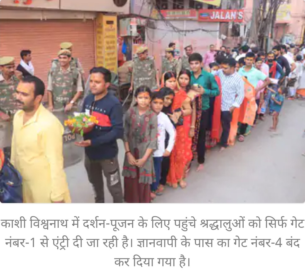 काशी विश्वनाथ में दर्शन-पूजन के लिए पहुंचे श्रद्धालुओं को सिर्फ गेट नंबर-1 से एंट्री दी जा रही है। ज्ञानवापी के पास का गेट नंबर-4 बंद कर दिया गया है।