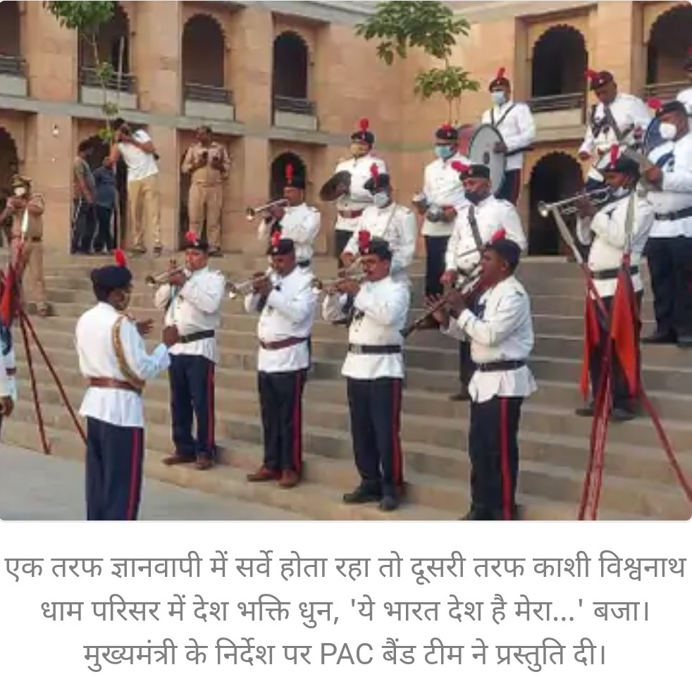 एक तरफ ज्ञानवापी में सर्वे होता रहा तो दूसरी तरफ काशी विश्वनाथ धाम परिसर में देश भक्ति धुन, ‘ये भारत देश है मेरा…’ बजा। मुख्यमंत्री के निर्देश पर PAC बैंड टीम ने प्रस्तुति दी।