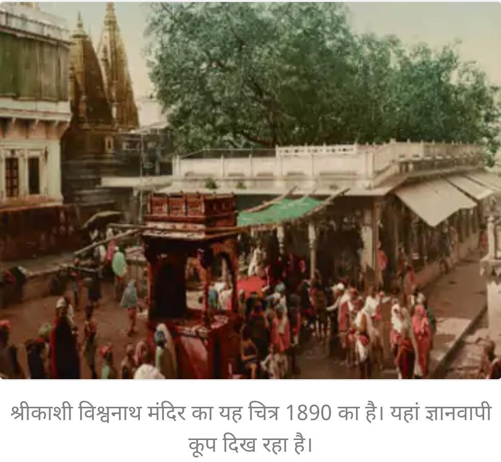 श्रीकाशी विश्वनाथ मंदिर का यह चित्र 1890 का है। यहां ज्ञानवापी कूप दिख रहा है।