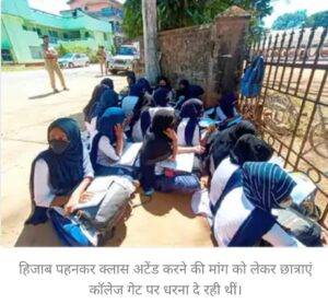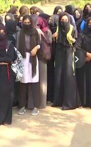 हिजाब के समर्थन में प्रदर्शन करती छात्राएं