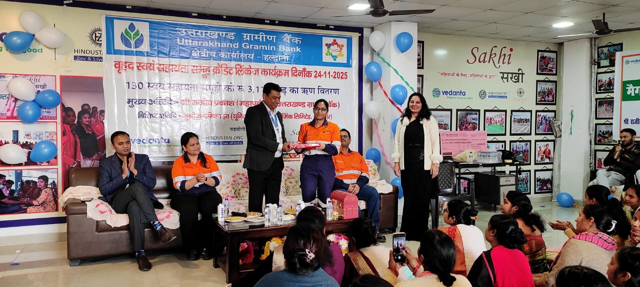 पंतनगर 28 नवंबर2025 । हिन्दुस्तान जिंक लिमिटेड ने मंजरी फाउंडेशन और उत्तराखंड ग्रामीण बैंक के सहयोग से पंतनगर में विशाल मेगा क्रेडिट लिंकेज कैंप का सफलतापूर्वक आयोजन किया। महिलाओं के आर्थिक उत्थान की निरंतर प्रतिबद्धता में, 130 स्वयं सहायता समूहों की 1538 महिलाओं को कुल 3 करोड़ 11 लाख की कैश क्रेडिट लिमिट प्रदान की गई। यह पहल उनकी आर्थिक आत्मनिर्भरता को मजबूती प्रदान करती है।