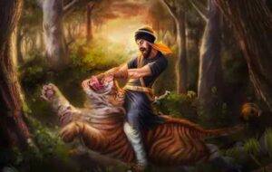रणजीत सिंह एक बार जंगल में शिकार खेलने गये। उनके साथ कुछ सैनिक और हरी सिंह नलवा थे। उसी समय एक विशाल आकार के बाघ ने उन पर हमला कर दिया। जिस समय डर के मारे सभी दहशत में थे, हरी सिंह मुकाबले को सामने आए। इस खतरनाक मुठभेड़ में हरी सिंह ने बाघ के जबड़ों को अपने दोनों हाथों से पकड़ कर उसके मुंह को बीच में से चीर डाला।