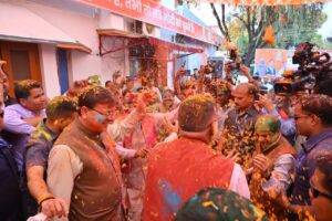 मुख्यमंत्री पुष्कर सिंह धामी ने दिव्यांग जनों के साथ फूलों और रंगों से होली खेलकर दी शुभकामनाएँ
