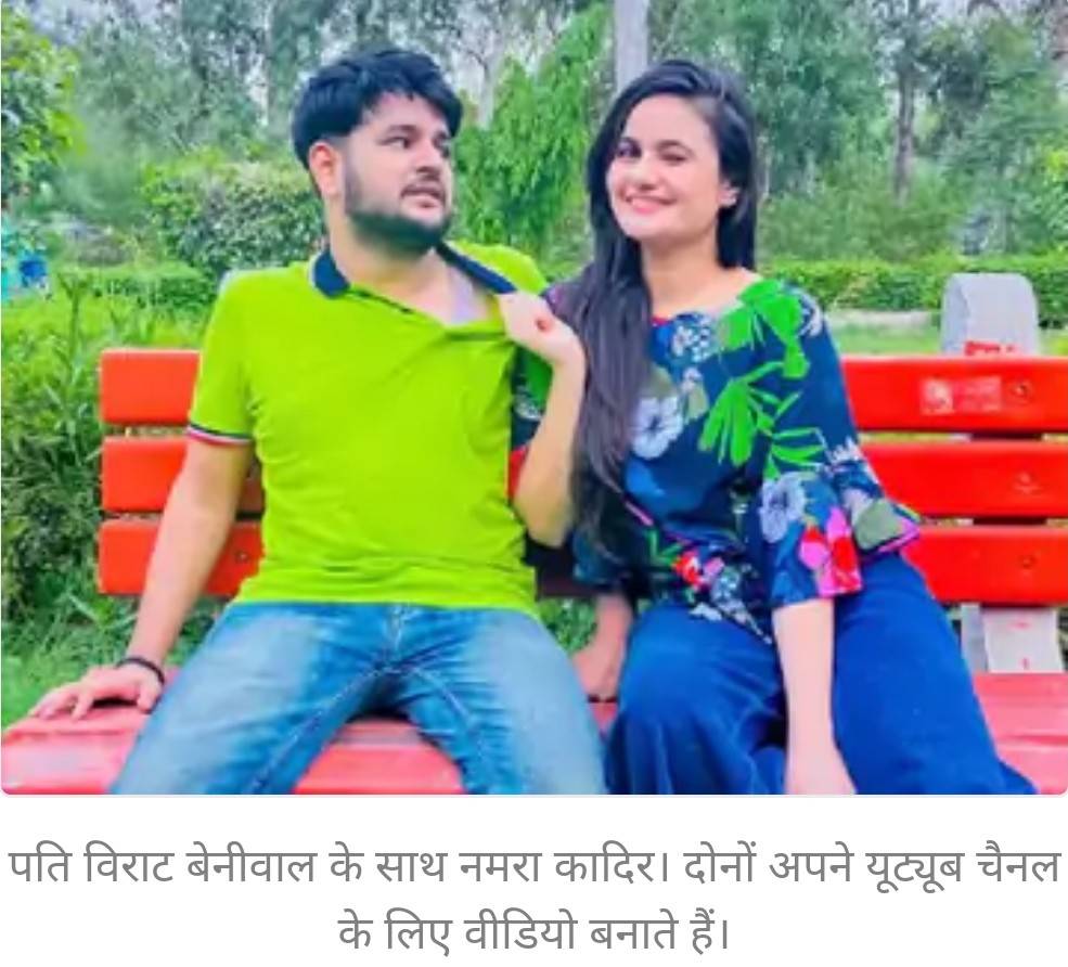 पति विराट बेनीवाल के साथ नमरा कादिर। दोनों अपने यूट्यूब चैनल के लिए वीडियो बनाते हैं।
