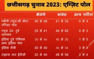 छत्तीसगढ़– सभी एजेंसियों ने एग्ज़िट पोल्स में कांग्रेस और बीजेपी में कांटे की टक्कर बताया था या फिर कांग्रेस को बढ़त दिखाई थी. 90 सीटों वाली विधानसभा में किसी भी एजेंसी ने कांग्रेस को 40 से कम सीटें मिलने का अनुमान नहीं लगाया था. भाजपा को 25 से लेकर 48 सीटें तक मिलने का अंदाज़ा लगाया गया था.लेकिन जब नतीजे आए तो भाजपा ने 54 सीटें जीतकर सरकार बनाई जबकि कांग्रेस को केवल 35 सीटें आईं.