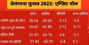 एग्ज़िट पोल्स में लगभग एजेंसियों ने तेलंगाना में कांग्रेस को बढ़त दिखाई थी. कांग्रेस को कम से कम 49 और अधिकतम 80 सीटें मिलने का अनुमान लगाया गया था. सत्ताधारी बीआरएस सभी एग्ज़िट पोल्स में सत्ता से बाहर होती हुई दिख रही थी. जब नतीजे आए तो कांग्रेस को 64 सीटें मिली जबकि बीआरएस को 39 सीटें मिली.