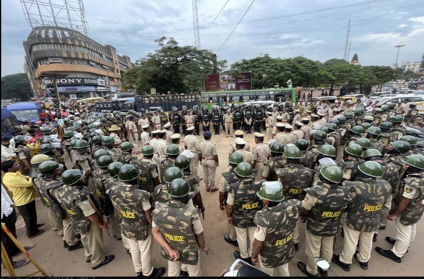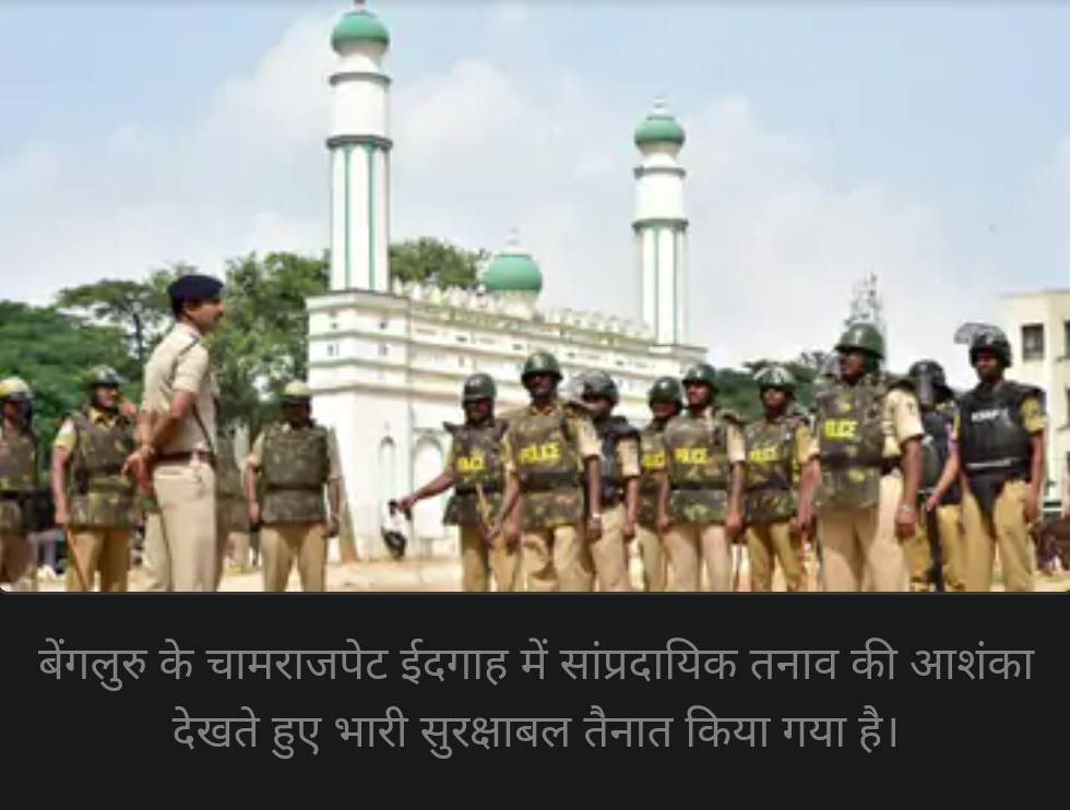 बेंगलुरु के चामराजपेट ईदगाह में सांप्रदायिक तनाव की आशंका देखते हुए भारी सुरक्षाबल तैनात किया गया है।