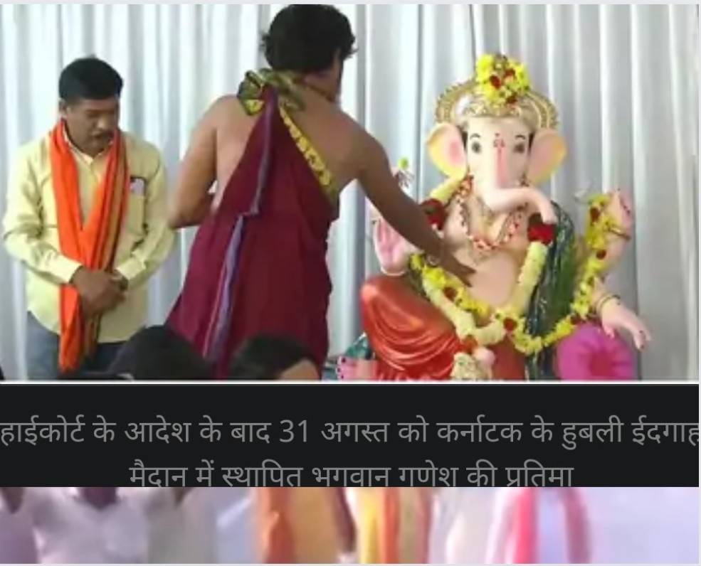 हाईकोर्ट के आदेश के बाद 31 अगस्त को कर्नाटक के हुबली ईदगाह मैदान में स्थापित भगवान गणेश की प्रतिमा