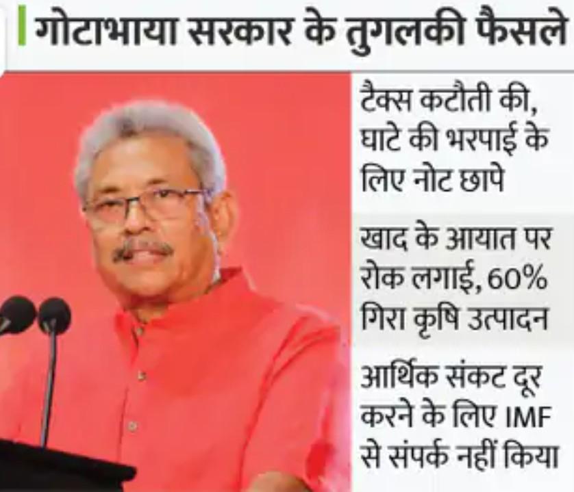 टैक्स कटौती दिसंबर 2019 में महामारी में की गई थी। इसे पैंडेमिक टैक्स कट कहा गया। गोटबाया राजपक्षे ने चुनाव जीतने के तुरंत बाद ये टैक्स कटौती की और घाटा पाटने को नोट छापने शुरू किए। ये एक तरह का पागलपन था।