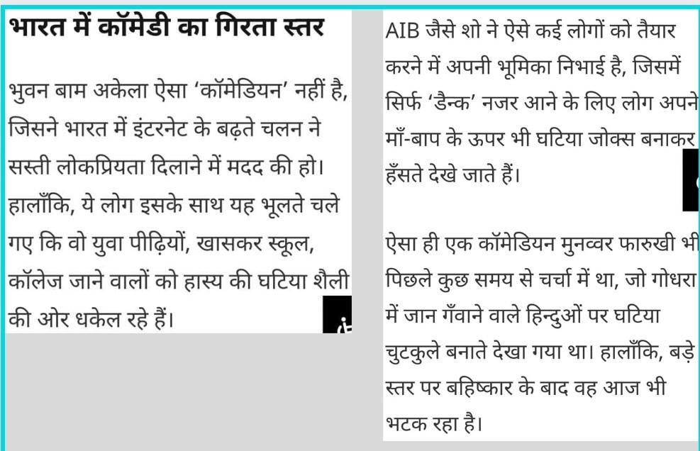 पहाड़ी लोग और उनकी अस्मिता पर बात करते हुए उत्तराखंड के नवयुवक आशीष ने कहा, “जिस तरह से कॉमेडियन आजकल ‘रशियन’ लिख या बोल देने का अर्थ सिर्फ ‘पोर्न’ मानने लगते हैं, क्या कल के दिन भुवन बाम जैसे लोगों के ऐसे कारनामों से ‘पहाड़न’ शब्द भी एक गाली नहीं बन जाएगा? और जिस तरह से कॉमेडीयंस की एक पूरी जमात ही आज ‘संस्कारी’ होने को गाली बना चुकी है, इस बात की क्या गारंटी है कि भुवन बाम ऐसा ही करने का प्रयास नहीं कर रहा है?”