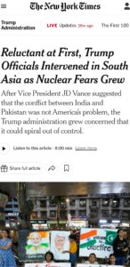 इनमें से नूरखान एयरबेस सबसे महत्वपूर्ण है क्योंकि यहाँ से कुछ ही दूरी पर पाकिस्तान का परमाणु भंडार रखा हुआ है। ‘न्यूयॉर्क टाइम्स’ ने अपने लेख में बताया है कि पाकिस्तान को अपने परमाणु भंडार को नष्ट किए जाने का भय था। यही कारण है कि जिस अमेरिकी के राष्ट्रपति JD वेंस ने कहा था कि भारत-पाकिस्तान संघर्ष से हमारा कोई लेना-देना नहीं है, उसी अमेरिका के राष्ट्रपति ने ट्वीट करके सीजफायर की घोषणा की। अमेरिका के नए स्टेट सेक्रेटरी और NSA मार्को रुबियो का भी इसमें हाथ रहा।