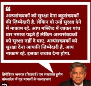 अंतरिम सरकार के गृह मामलों के सलाहकार ब्रिगेडियर जनरल सखावत हुसैन ने हिंसा के लिए हिंदुओं से माफी मांगी है.