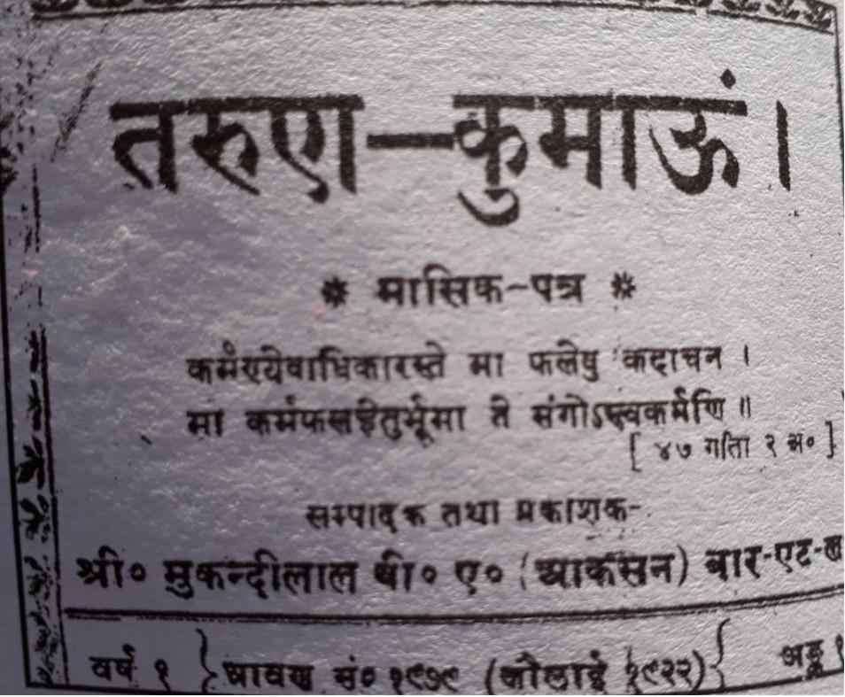 बैरिस्टर मुकंदी लाल ने 1922 में लैंसडोन से ‘तरूण कुमाँऊ’ हिंदी साप्ताहिक समाचार पत्र प्रकाशित किया।