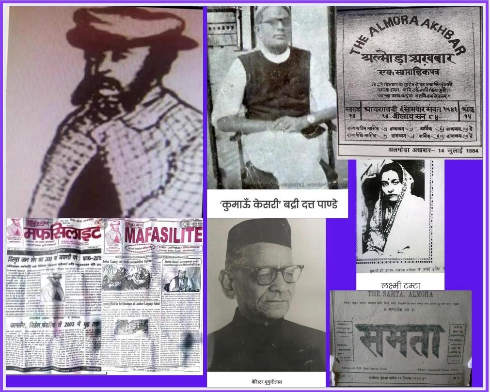 5 अल्मोड़ा अखबार (1870),1870 ई० में अल्मोड़ा में डिबेटिंग क्लब शुरू हुआ और1871 ई० में अल्मोड़ा अखबार।डिबेटिंग क्लब व अल्मोड़ा अखबार के संस्थापक संंपादक बुद्धि वल्लभ पंत थे। उनके बाद सदानन्द सनवाल , मुंशी इम्तियाज अली , जीवानन्द जोशी , विष्णु दत्त जोशी सम्पादक रहे लेकिन अखबार सरकार समर्थक ही रहा।1913 ई० में बद्रीदत्त पांडे अल्मोड़ा अखबार के संपादक बने। उन्होंने इसे साप्ताहिक कर स्वंतत्रता आंदोलन से जोड़ा।14 जुलाई 1913 ई० को अल्मोड़ा अखबार ने कुली बेगार प्रथा व जंगलात नीति के विरोध में लेख छापा।बद्रीदत्त पाण्डे के इन लेखोंं पर तत्कालीन डिप्टी कमिश्नर लोमश ने बद्रीदत्त पांडे को धमकी दी कि वह अखबार बंद कर देगा।1918 ई० में बद्रीदत्त पांडे ने “भालुसाही’ लिखा और अप्रैल 1918 ई० में अल्मोड़ा अखबार पर प्रतिबंध लग गया।अल्मोड़ा अखबार प्रतिबंधित होने पर गढ़वाल समाचार पत्र ने छापा”एक गोली के तीन शिकार- मुर्गी ,कुली व अल्मोड़ा अखबार।