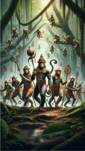 मोटे तौर पर इसका मतलब होता है इनकी आवाज कितनी मीठी है, इनकी नाक भी बड़ी नुकीली है, होंठ कितने लाल हैं! इनकी तो आँखें भी कितनी बड़ी बड़ी हैं! अब वानरों ने देखने की कोशिश की कि इनकी पूँछ है या नहीं? जैसे ही दिखा कि इनकी पूँछ नहीं है वानर बोले कि पूँछ के बिना तो सारा सौन्दर्य बेकार ही है ! “पुच्छं विना तुच्छमिदं हि सर्वम्।”