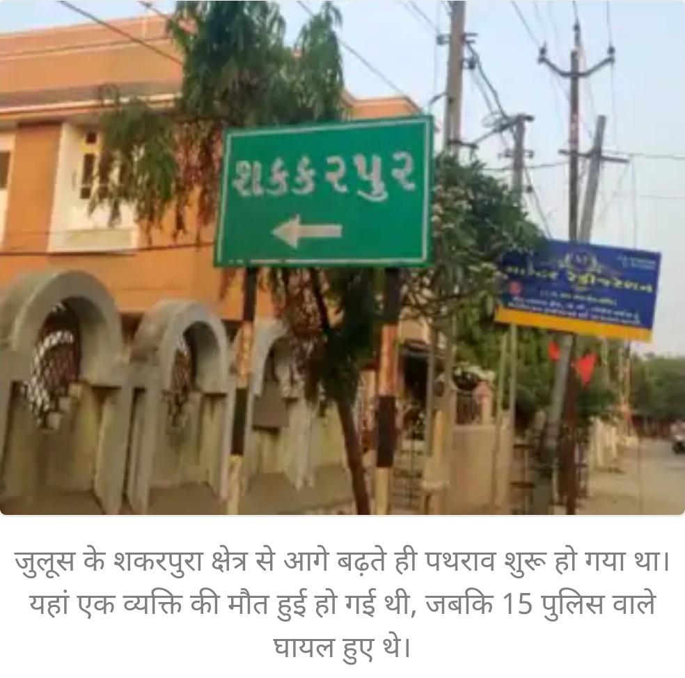 जुलूस के शकरपुरा क्षेत्र से आगे बढ़ते ही पथराव शुरू हो गया था। यहां एक व्यक्ति की मौत हुई हो गई थी, जबकि 15 पुलिस वाले घायल हुए थे।