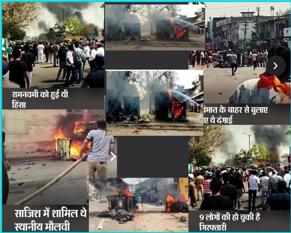 10 अप्रैल को रामनवमी के मौके पर गुजरात के तीन जिलों हिम्मतनगर, खंभात और द्वारका में दो समुदाय के बीच दंगे हुए थे। खंभात में हुई हिंसा में तीन स्थानीय मौलवियों के नाम सामने आए है। खंभात पुलिस के मुताबिक दंगे की साजिश खंभात के ही तीन मौलवियों और दो अन्य लोगों ने रची थी। पुलिस ने तीनों मौलवियों सहित अब तक 9 लोगों को हिरासत में लिया है। वहीं, अन्य लोगों की तलाश जारी है।