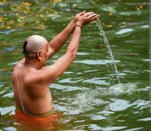 जहाँ भी स्नान करे, वहीं उनका स्मरण करे अथवा ‘पुष्करादिनि तीर्थाति गङ्गाद्याः सरितस्तथा । आगच्छन्तु पवित्राणि स्त्रानकाले सदा मम‘ ‘ हरिद्वारे कुशावर्ते बिल्वके नीलपर्वते । स्त्रात्वा कनखले तीर्थे पुनर्जन्म न विद्यते ॥‘ ‘अयोध्या मथुरा माया काशी काञ्ची अवन्तिका । पुरी द्वारावती ज्ञेयाः सप्तैता मोक्षदायिकाः‘ ‘गङ्गे च यमुने चैव गोदावरि सरस्वति । नर्मदे सिन्धु कावेरि जलेऽस्मिन् संनिधिं कुरु‘ का उच्चारण करे ।