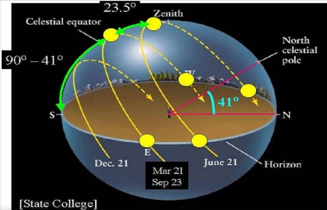 दूसरी छमाही में ठीक इसका उल्टा होता है | परन्तु जब सूर्य विषुवत वृत्त के उत्तर रहता है तब वह उत्तरी ध्रुव (सुमेरु पर्वत पर) ६ महीने तक सदा दिखाई देता है और दक्षिणी ध्रुव पर इस समय में नहीं दिखाई पड़ता | इसलिए इस छमाही को देवताओ का दिन तथा राक्षसों की रात कहते हैं | जब सूर्य ६ महीने तक विषुवत वृत्त के दक्षिण रहता है तब उत्तरी ध्रुव पर देवताओं को नहीं दिख पड़ता और