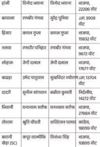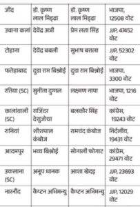 3- जजपा के तीनों बागी विधायक देवेंद्र सिंह बबली, रामकुमार गौतम और अनूप धानक की लॉटरी लगी है।देवेन्द्र सिंह बबली को फतेहाबाद के टोहाना, अनूप धानक को उकलाना और रामकुमार गौतम को सफीदों से टिकट मिला है।