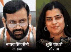 10- कुछ दिन पहले भाजपा ज्वाइन करने वाली और राज्यसभा चुनाव निर्विरोध जीतने वालीं किरण चौधरी को पार्टी ने एक और तोहफा दिया है। उनकी बेटी श्रुति चौधरी को पार्टी ने भिवानी की तोशाम विधानसभा सीट से उतारा है। किरण चौधरी पहले कांग्रेस में थीं।