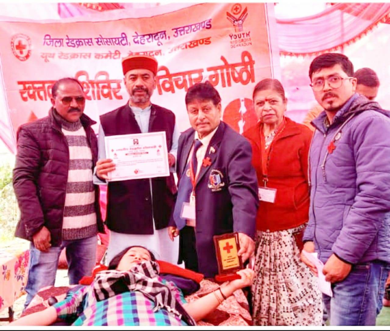 रक्तदान शिविर का उद्घाटन मुख्य अतिथि भाजपा नेता रविंद्र जुगरान, विशिष्ट अतिथि मुख्यमंत्री के प्रतिनिधि किशोर भट्ट, कार्यक्रम अध्यक्ष यूथ रेडक्रास कमेटी के चेयरमैन अनिल वर्मा, वरिष्ठ सदस्या मेजर प्रेमलता वर्मा,माध्यमिक अतिथि शिक्षक संघ के प्रदेश अध्यक्ष अभिषेक भट्ट कार्यकारी अध्यक्ष आशीष जोशी व प्रदेश प्रवक्ता राकेश लाल जोशी ने सम्बोधन कर किया।