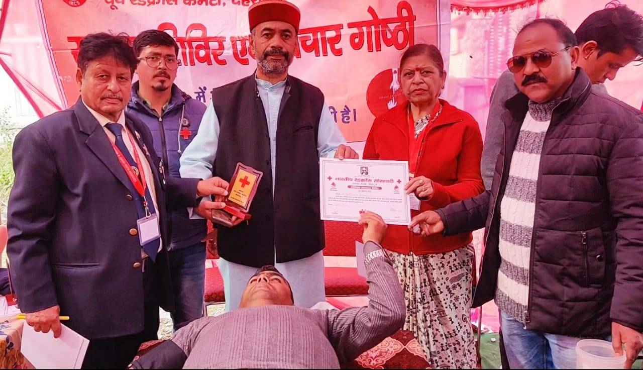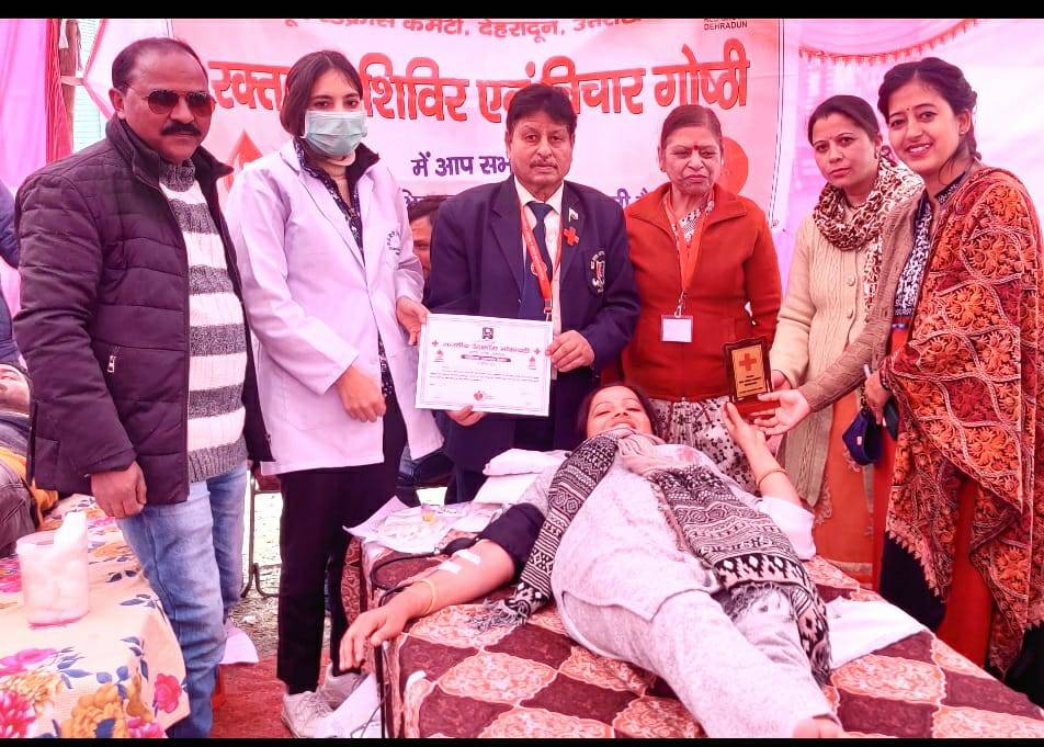 देहरादून 20 दिसंबर।जिला यूथ रेडक्रास कमेटी के तत्वावधान ननूरखेडा़ स्थित शिक्षा निदेशालय के प्रांगण में आयोजित रक्तदान शिविर एवं विचार गोष्ठी में अपनी तदर्थ नियुक्ति की मांग को लेकर धरने पर बैठे माध्यमिक अतिथि शिक्षक संघ के संघर्षरत शिक्षक-शिक्षिकाओं ने अपनी रचनात्मक सोच का परिचय देते हुए कुल 84 यूनिट रक्तदान करके एक अनुकरणीय उदाहरण प्रस्तुत किया।
