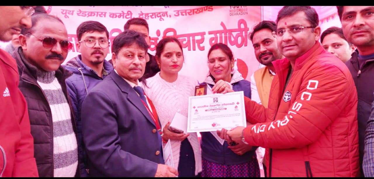 इससे पूर्व श्री अनिल वर्मा ने यूथ रेडक्रास की ओर से मुख्य अतिथि रविन्द्र जुगरान तथा माध्यमिक शिक्षक संघ के प्रदेश अध्यक्ष अभिषेक भट्ट को शाॅल ओढ़ाकर सम्मानित किया।*